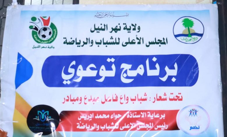 ينظم المجلس الأعلى للشباب والرياضة بولاية نهر النيل ورشة تدريبية للتحذير من مخاطر المخدرات منتصف رمضان الحالي بمركز شباب عطبرة وذلك بمشاركة (35) شاب وشابة يمثلون محليات الولاية المختلفة يتم تدريبهم ليكونوا نواة لتدريب الشباب وتأتي الورشة بالتنسيق مع اللجنة الفرعية لمكافحة المخدرات بنهر النيل.