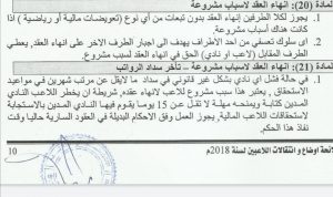 المادة 20 من لائحة أوضاع وتنقلات اللاعبين لسنة 2018م تحدثت عن إنهاء العقد لأسباب مشروعة فقد جاء في الفقرة (1) ما يلي: